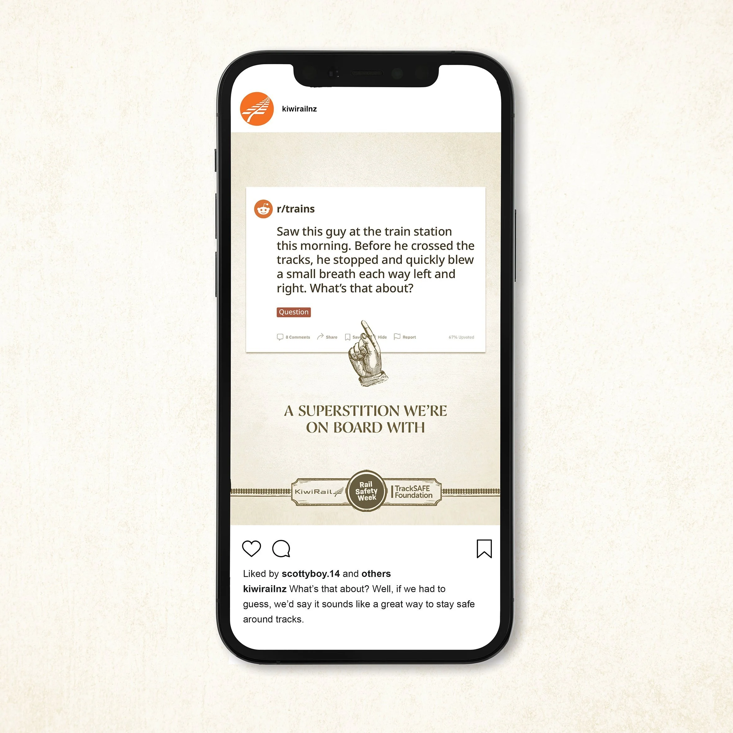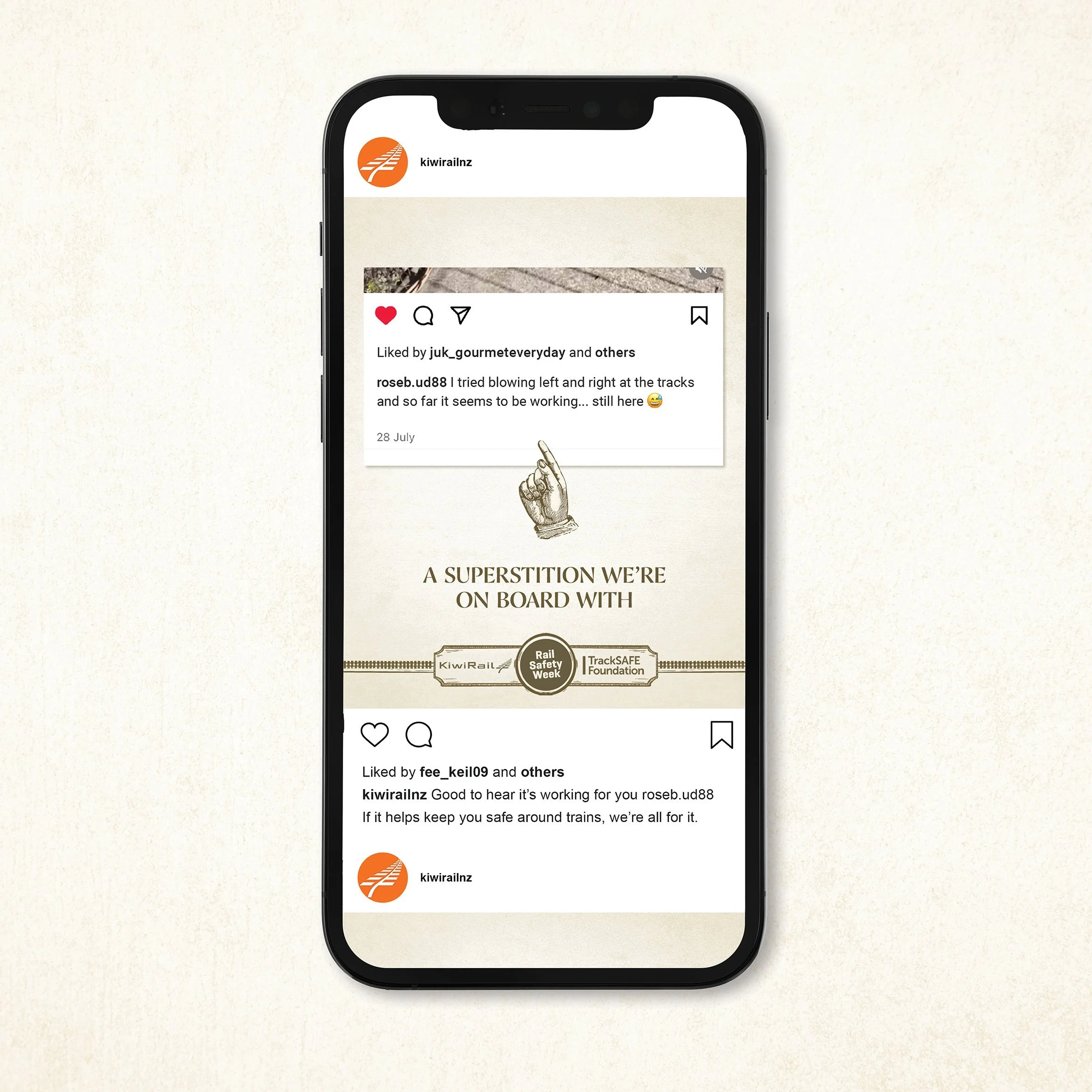 Finally, when it looked like it had been around for years, KiwiRail endorsed the superstition and content in Rail Safety Week.